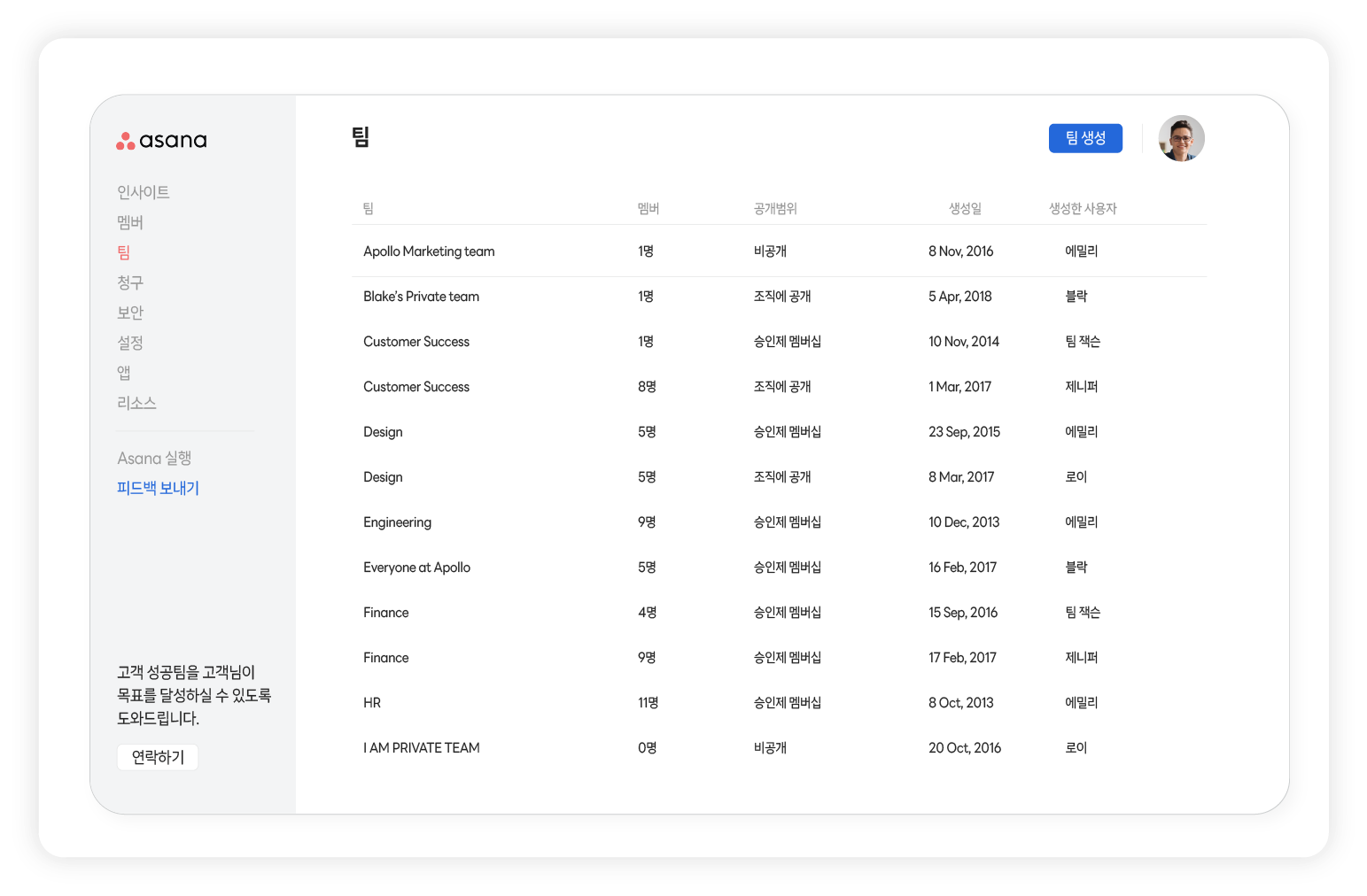 팀 관리